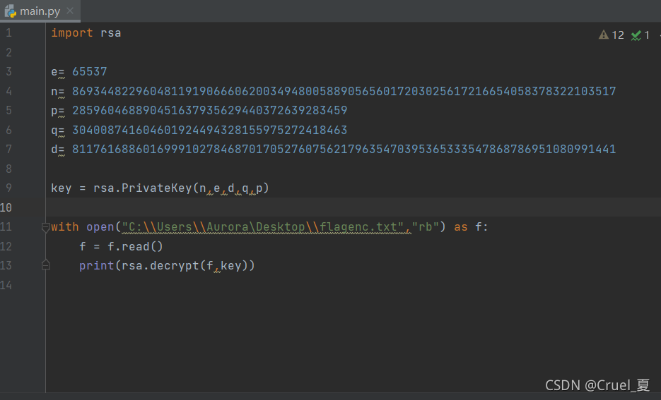 咳咳,回归正题,通过公钥解析,成功知道了e,n的值,然后分解N。