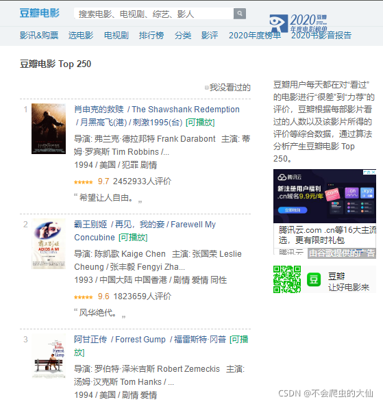 ? ? ? ? 人中苦短我用python,大家好今天给大家分享一下爬取豆瓣电影排行榜top250的最新教程,话不多说,直接上源码!我会在代码中做出详细解释!