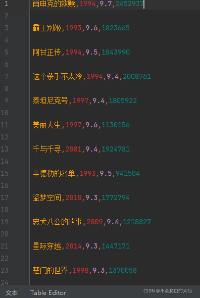 csvwriter = csv.writer(f) #向文件中写入数据方法
