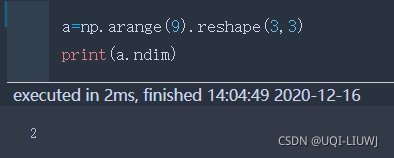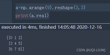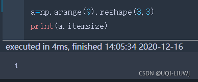 ndim | 矩阵维数 |  | shape | 数组的维度(元组形式)【用reshape调整大小】 |  | itemsize | 一个元素的大小(占几个字节) |  | real | 元素的实部 |  | imag | 元素的虚部 |  | dtype | 数据类型 |  | size | 元素个数 |  |