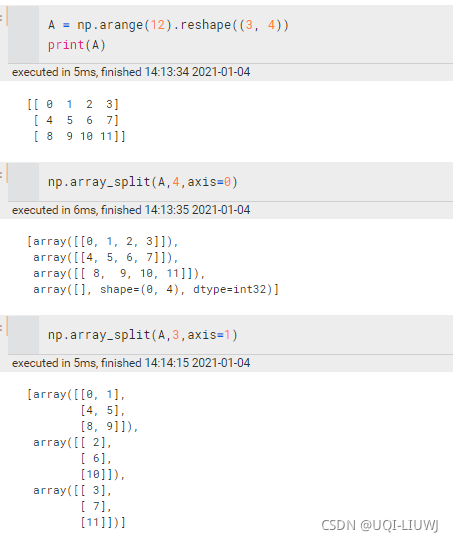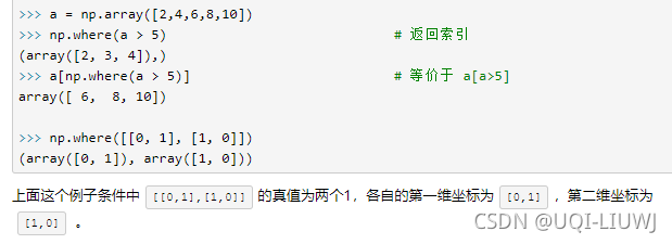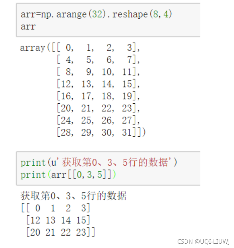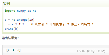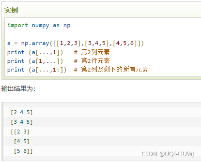 a[start:end:step] | 左闭右开  | a[…,x]——第x+1列 a[x,…]——第x+1行 |  | a[[list1],[list2]] | 获取 (list1[0].list2[0]) (list1[1].list2[1]) (list1[2].list2[2]) ….等索引位置的数据  ? | a[list] | 获取list中这几行元素  | a[np.ix_([list1],[list2])] |  获取第list1行的第list2列的数据  ? |