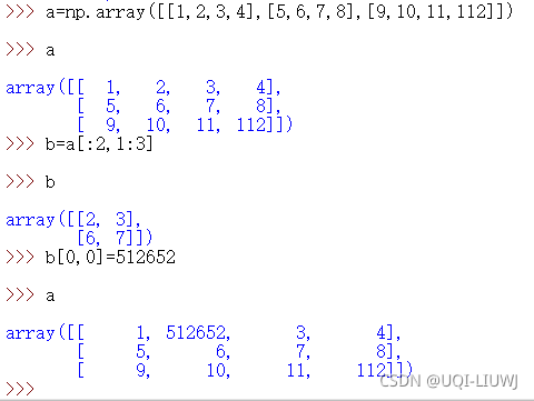 切片是原来的array的一个视图,修改切片的话,原来的也改变了