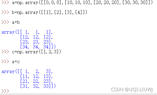 ?当运算中的 2 个数组的形状不同时,numpy 将自动触发广播机制