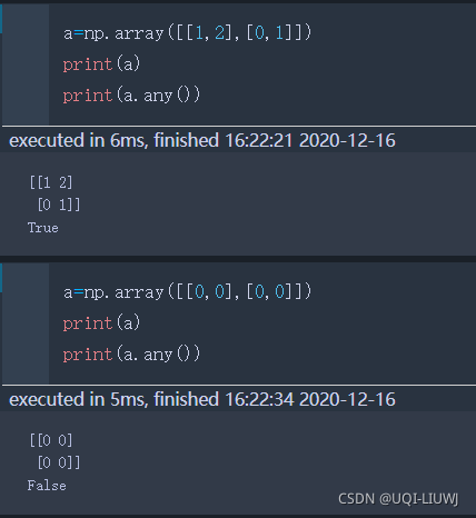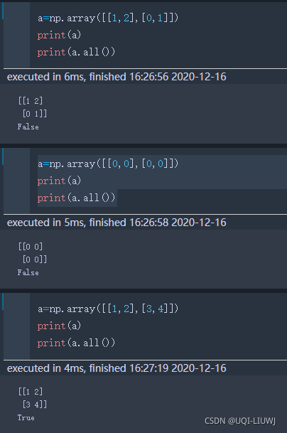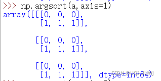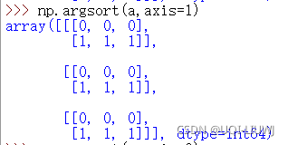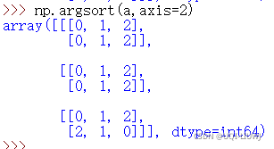 all | 矩阵中元素是否全部非零  | any | 矩阵中是否有元素非零  | argmax/argmin | 第几维度的最大最小值的坐标  Argmax[0]:对每一个a[…][0][0],a[…][0][1],a[…][0][2] a[…][1][0],a[…][1][1],a[…][1][2]找一个最大值 | argsort | argsort函数返回的是数组值从小到大的索引值