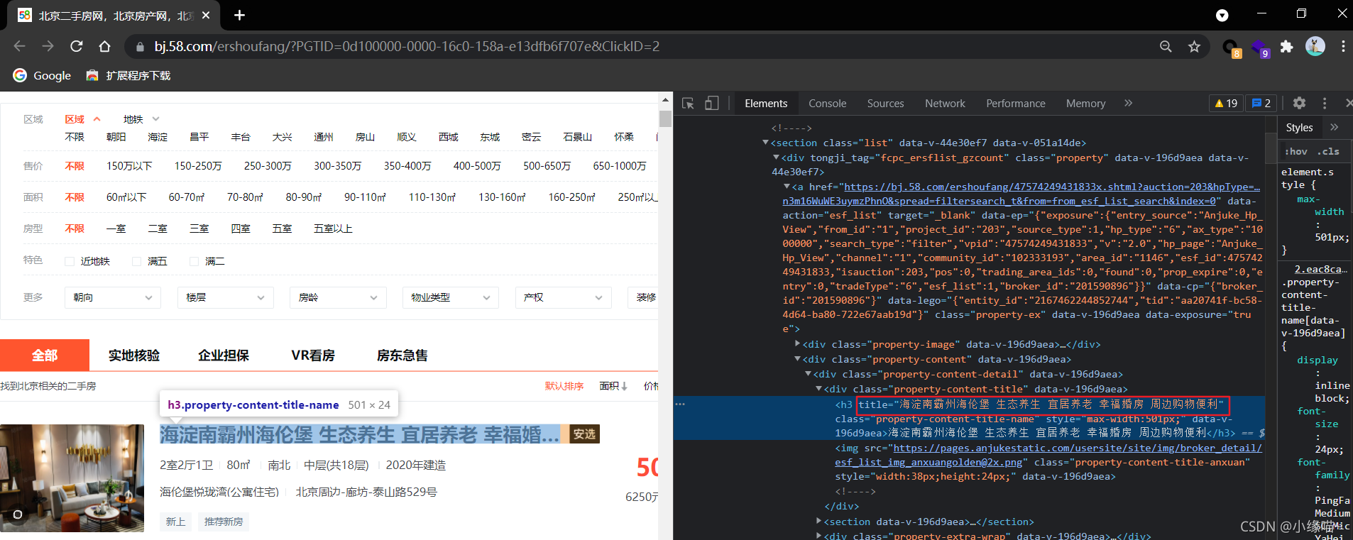 将页面中的房源名称解析出来,即将title值解析出来就行