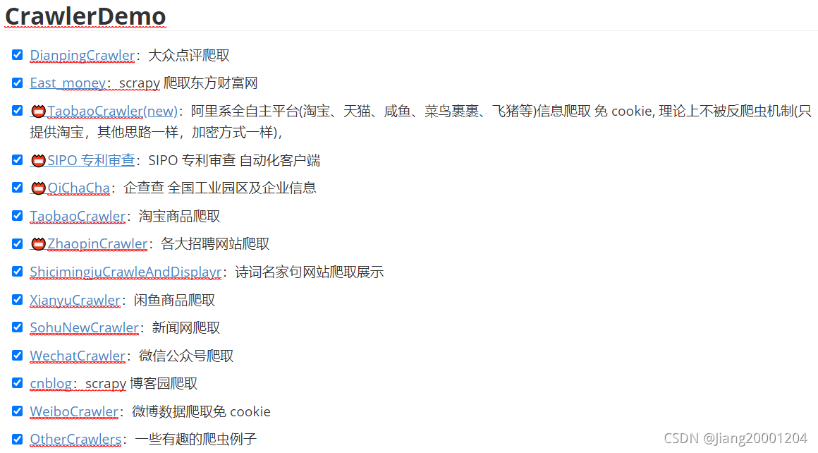 每个项目都有对应的readme,可供了解爬虫的相关过程。