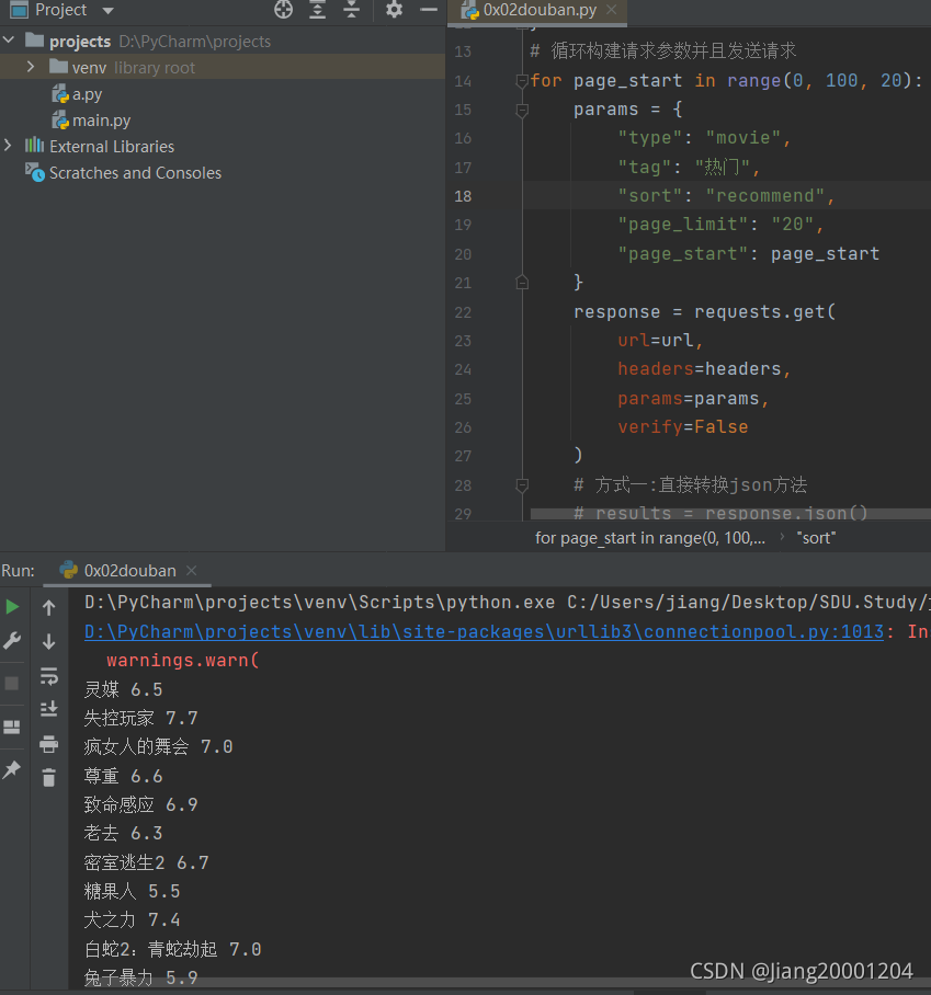 - 尝试先运行部分代码(例:成功运行豆瓣电影排行榜的爬虫程序)