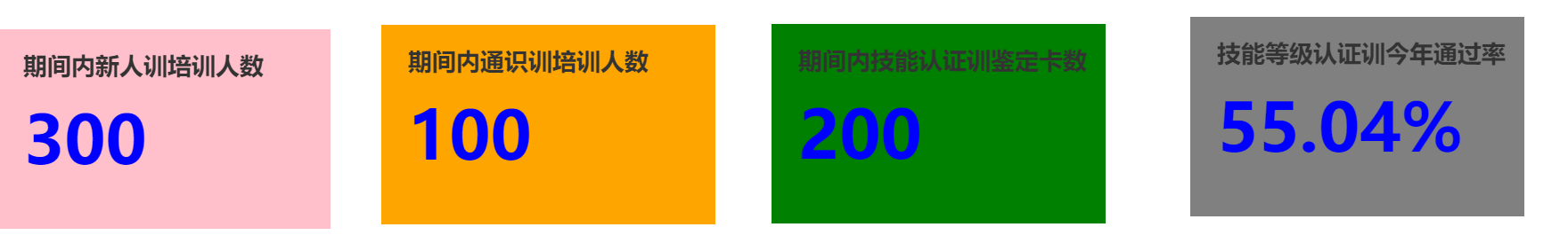 big_card3 = big_card(title1='期间内技能认证训鉴定卡数',subtitle1='200',color_bg='green')