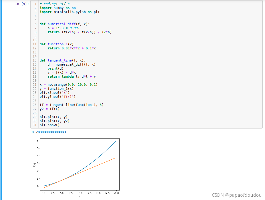 为例,计算它的数值微分,首先根据高等数学公式,可以得出