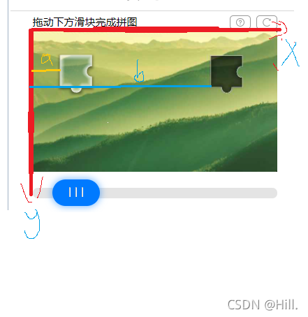 1.分析缺块图和背景图,思路是这里有两个坐标,需要计算的距离是 b-a的横坐标即可 这就是我们需要滑动的距离