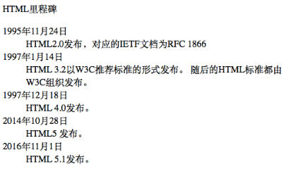 < dd> HTML2.0发布,对应的IETF文档为RFC 1866</ dd>
