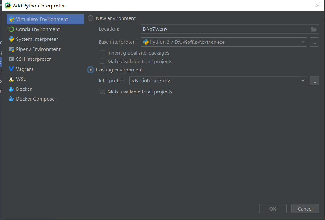 ?勾选下面已存在环境,点击"..."