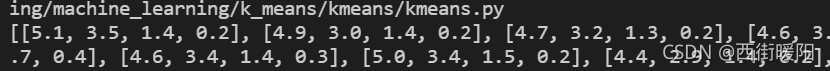????????方法三和方法一、二返回的数据类型不一样,方法一、二是把每个数据集的特征分别放在一个list里面,再用一个大的list装所有数据集,这样就成了一个二维的数组,而方法三就是用read()的方法,将所有的数据集的特征放在一个list里面,没有区分特征属于哪一类。