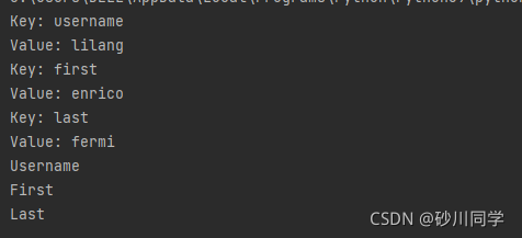 'last': 'fermi',#为在下一行添加键值对做好准备