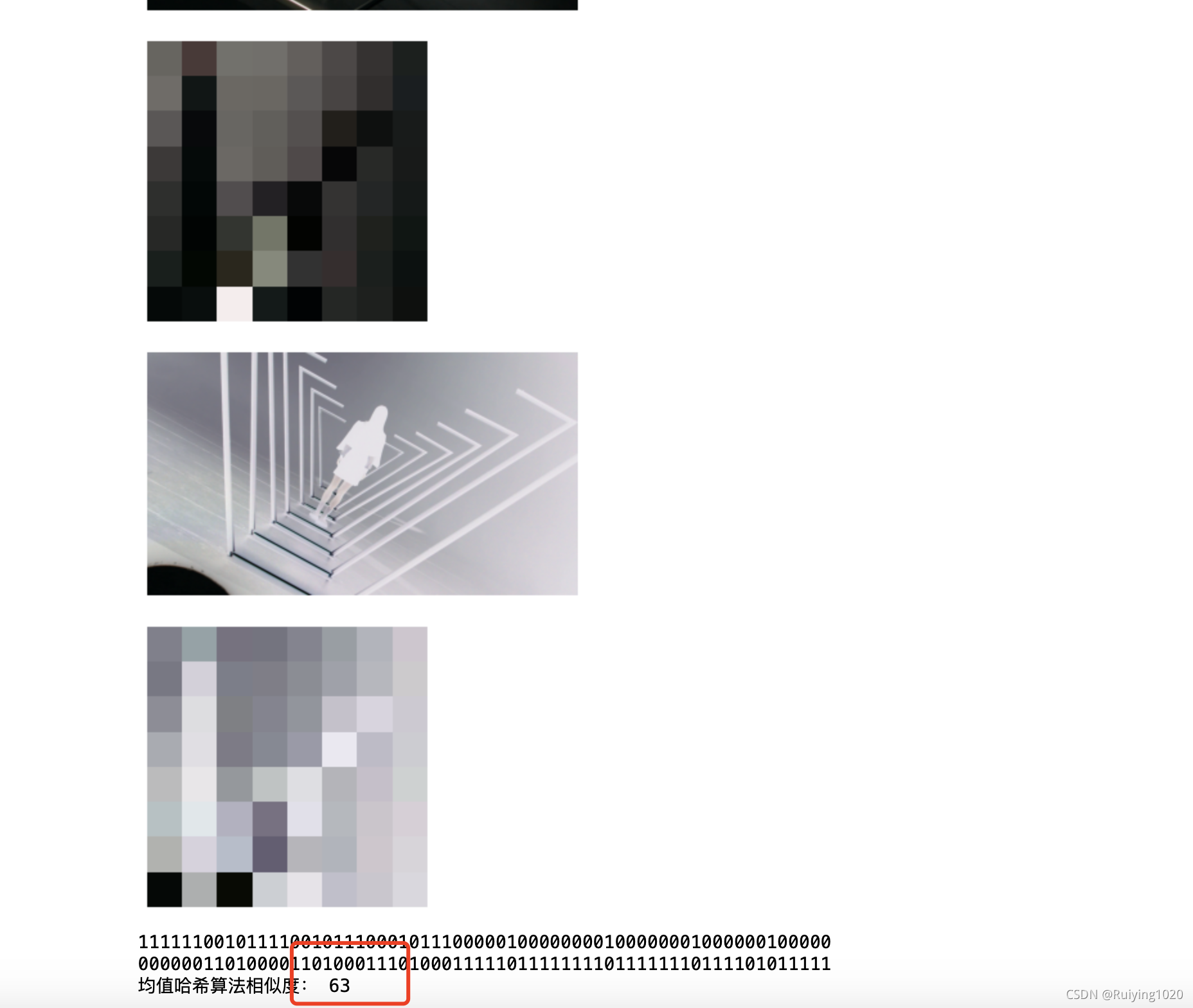 第一步:看两个相似照片的哈希数值