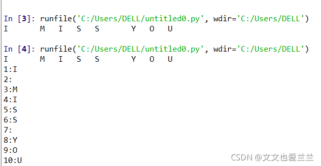 runfile('C:/Users/DELL/python11.13.py', wdir='C:/Users/DELL') I?? ? ?? ?M?? ?I?? ?S?? ?S?? ? ?? ?Y?? ?O?? ?U?? ? 1:I 2:? 3:M 4:I 5:S 6:S 7:? 8:Y 9:O 10:U 朋友,柳静,过年见一面吧! 朋友,钟刚佳,过年见一面吧! 朋友,陈顺龙,过年见一面吧! 朋友,陈子怡,过年见一面吧! 朋友,邹雪森,过年见一面吧!