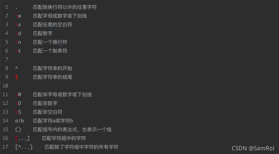 - (?P<组名>):为正则表达式分组,调用grop("组名")函数输出命名为该组名的表达式。