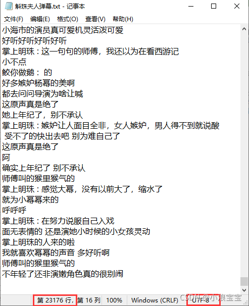 # 编码形式为'utf-8',如果不添加编码形式,因为弹幕里有表情等形式,可能会出错
