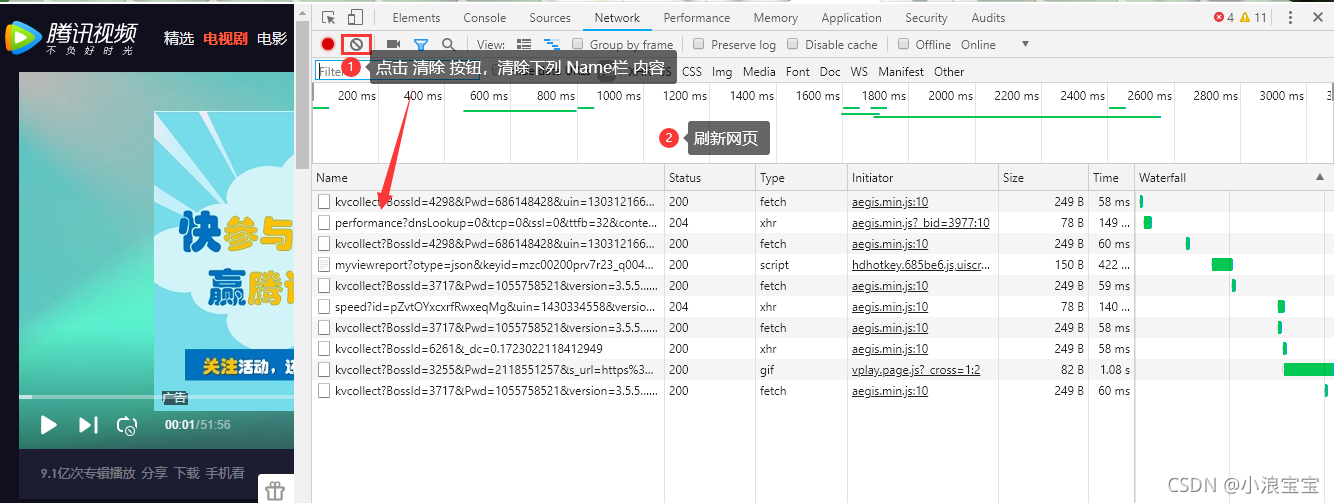? ? ? ? 2)打开 开发者工具 ,点击“清除按钮”并刷新网页;