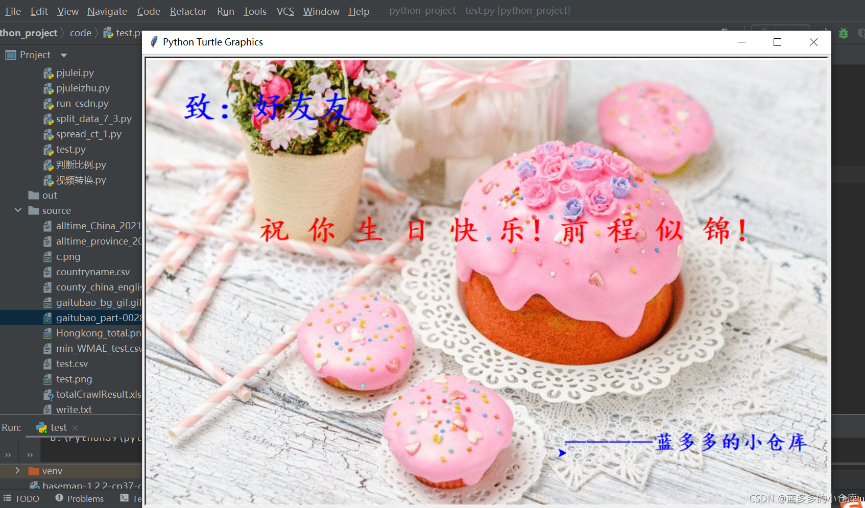 t.write('————蓝多多的小仓库', font=('楷体', 20, 'bold'))