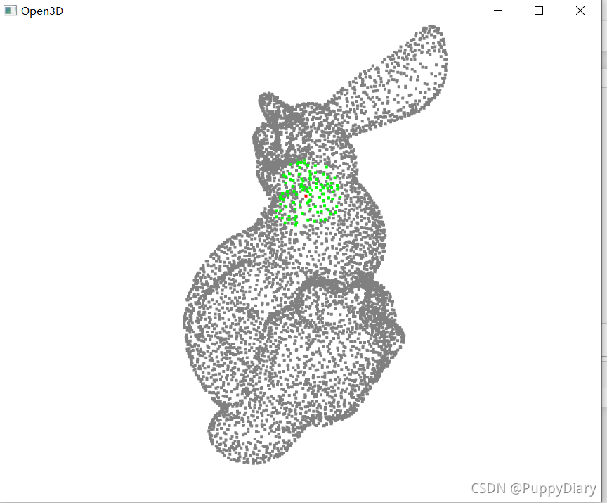 np.asarray(pcd.colors)[idx[1:], :] = [0, 1, 0]#将返回找到的点的坐标放到一个数组里,色彩设置为绿色