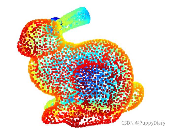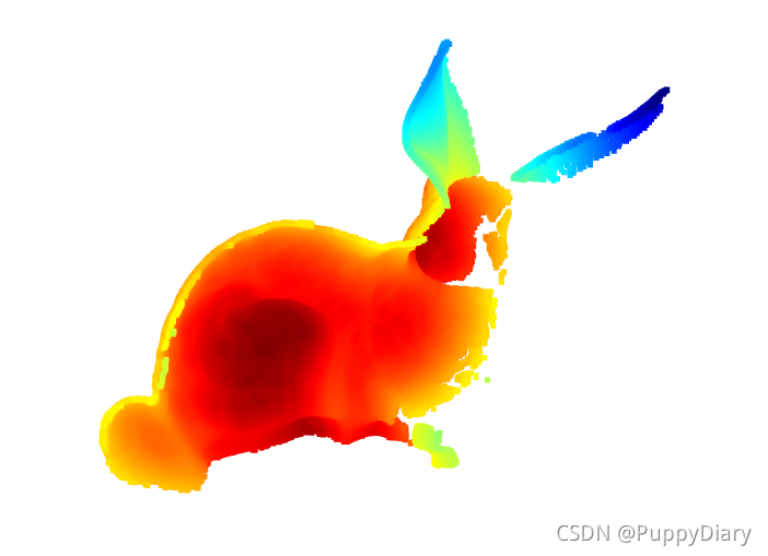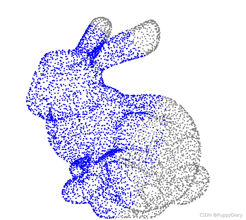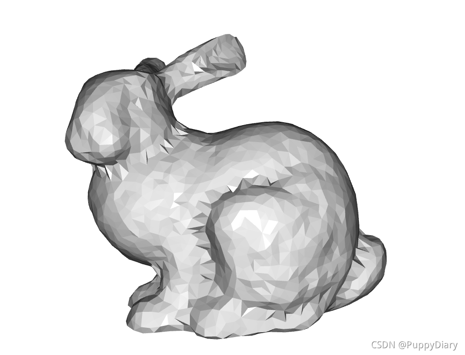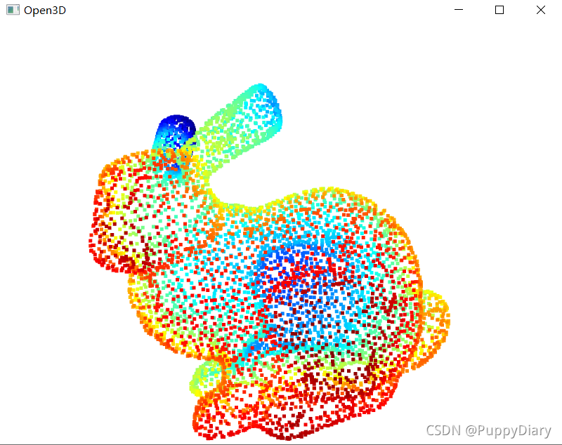 pcd.paint_uniform_color([0.5, 0.5, 0.5])#这里的rgb取值为0-1,[0.5,0.5,0.5]意味着整个兔子的点云都以灰色呈现