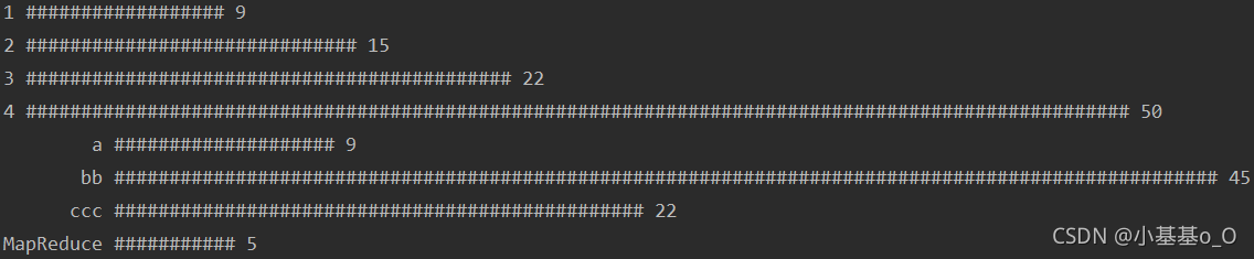 bars([9, 45, 22, 5], ['a', 'bb', 'ccc', 'MapReduce'])