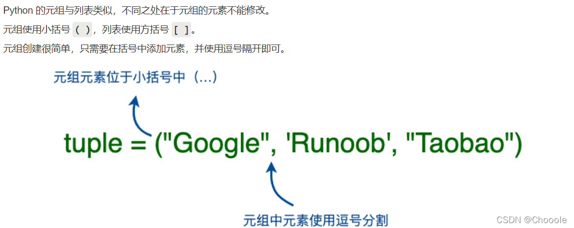 tup1 = ('Google', 'Runoob', 1997, 2000)