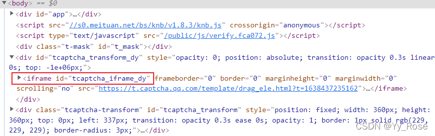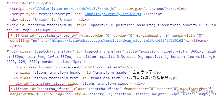 ? ? ? ? 但是这里最后报错显示:NoSuchFrameException: Message: tcaptcha_iframe_dy,经过查询对比发现原来这个网页里面有两个iframe