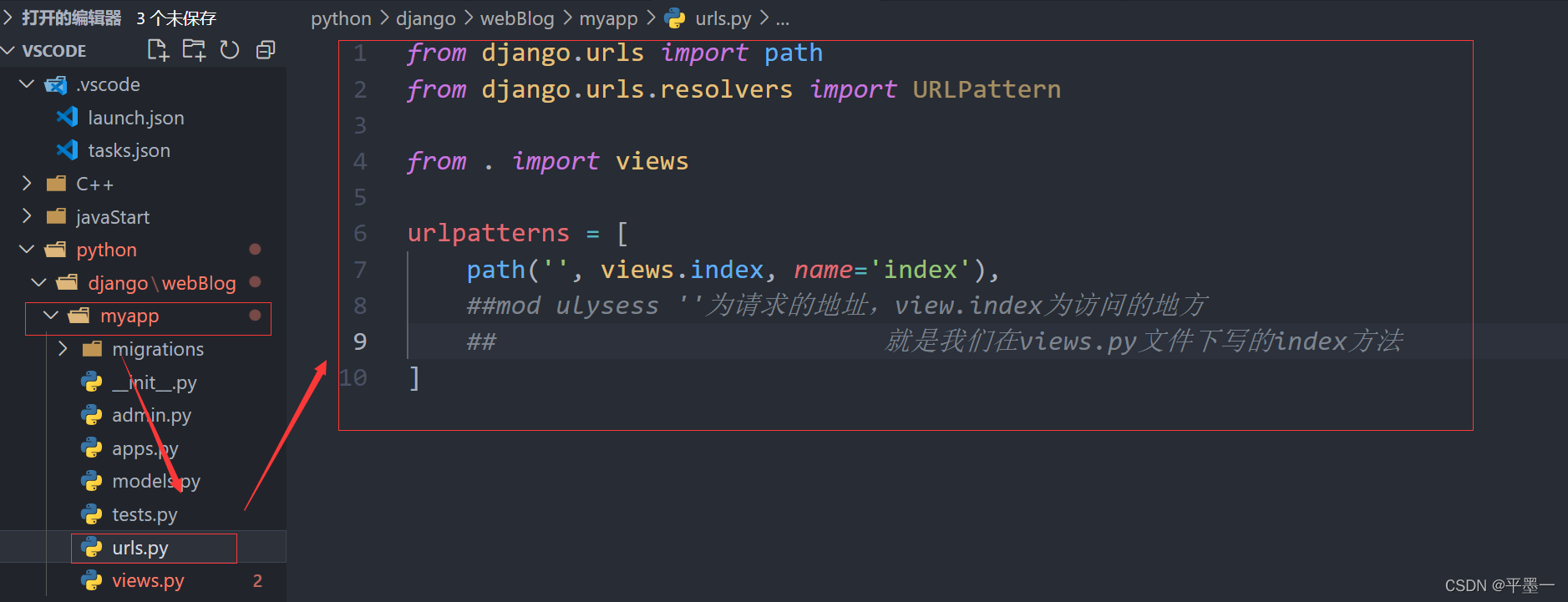 ##mod ulysess ''为请求的地址,view.index为访问的地方