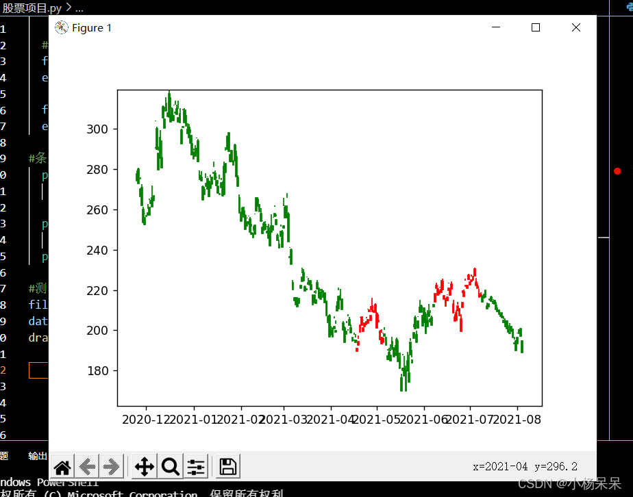 y2 = close_price-open_price #绘制条形图的y轴数据