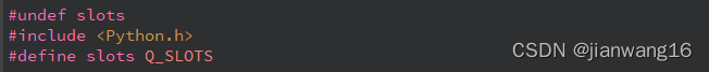 ?在需要引用Python的文件添加头文件引用,Python的slots和Qt的slots关键字冲突,所以按以下方式添加引用。