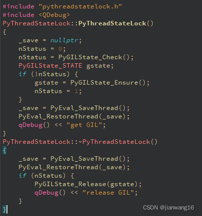 ??若是多线程调用,则需要使用Python全局锁GIL,参考网上的资源,新建一个PyThreadStateLock类,在任何多线程调用Python的位置,先实例化一个PyThreadStateLock。