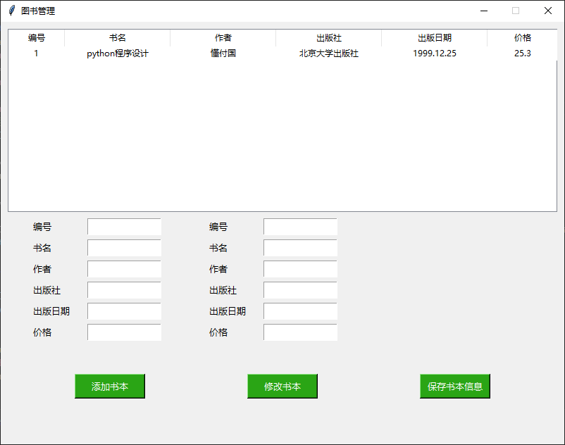 tree["columns"] = ("编号","书名","作者", "出版社", "出版日期", "价格")