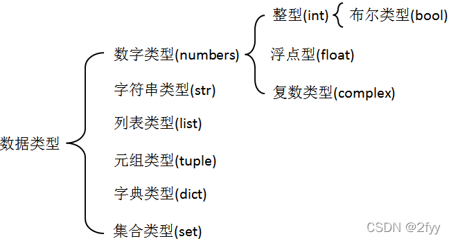 1、数字类型有整型(int)、浮点型(float)、复数类型(complex)和布尔类型(bool)。bool类型比较特殊,它是int的子类,只有True和False两种取值。