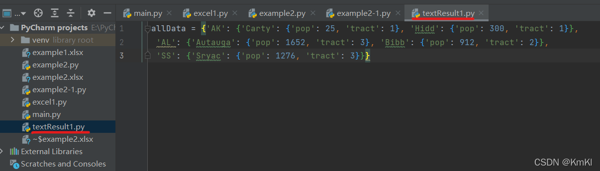 生成一个textResult1.py文件