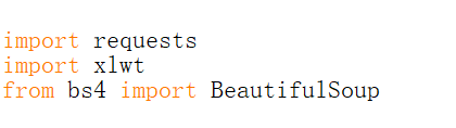 首先调用requests,xlwt,BeautifulSoup库。requests库可以很方便的向网页服务器发送请求和获取网页数据。xlwt库用于导出excel使用的库。BeautifulSoup库用于解析网站。