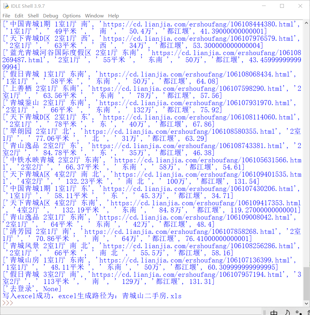 print('写入excel成功,excel生成路径为:%s' % '青城山二手房.xls')