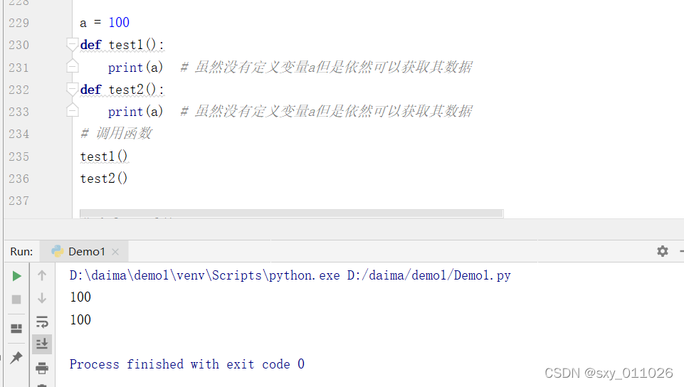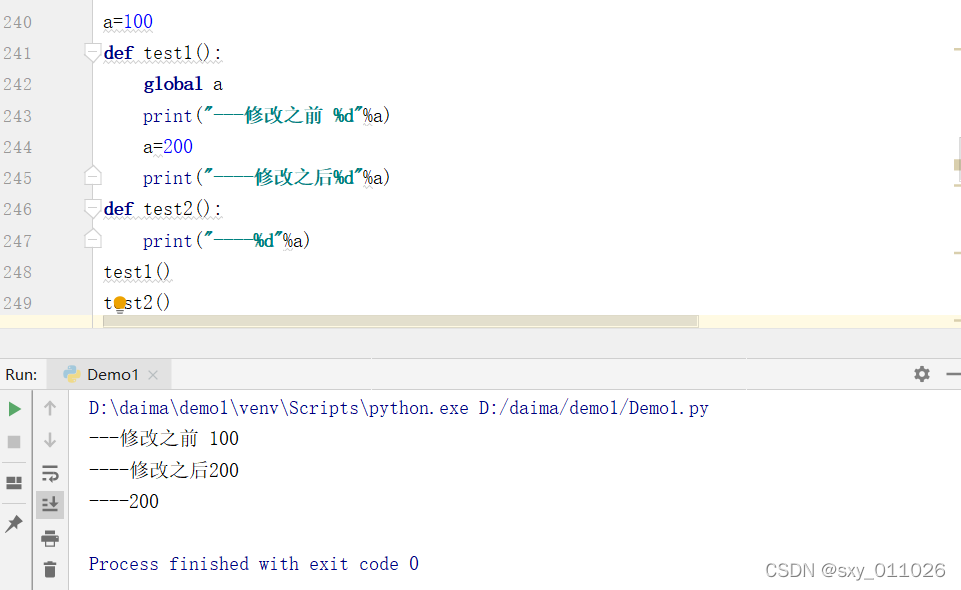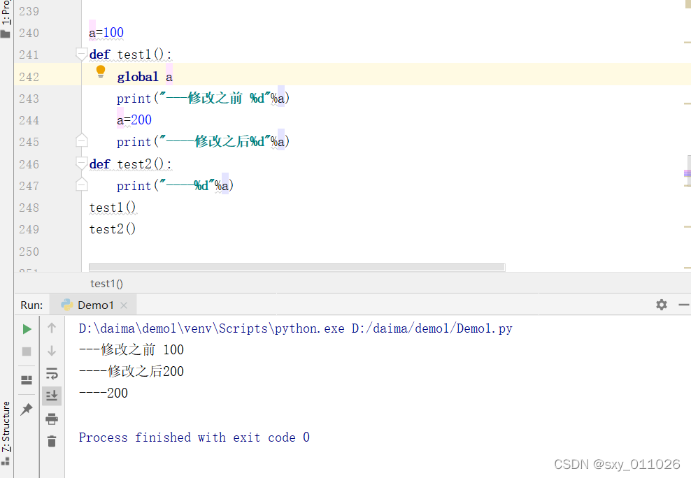 总结: 当函数内出现局部变量和全局变量相同名字时,函数内部中的 变量名 = 数据 此时理解为定义了一个局部变量,而不是修改全局变量的值