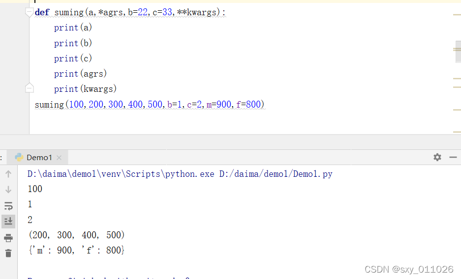 ?说明: 如果很多个值都是不定长参数,那么这种情况下,可以将缺省参数放到 *的后面, 但如果有**的话,**必须是最后的,假如缺省参数在*前面,就会报错