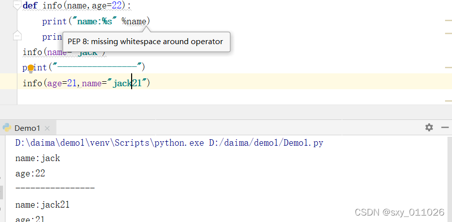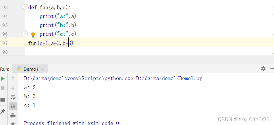 参数调用时,可以改变传参顺序,如果有位置参数需要位置参数放在关键字参数前面