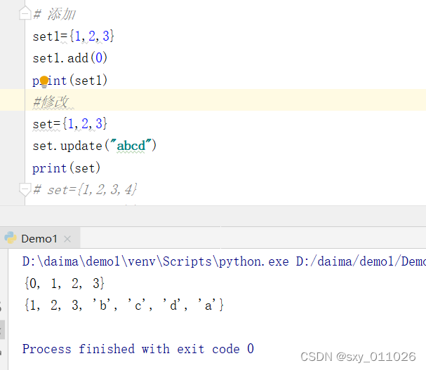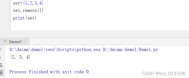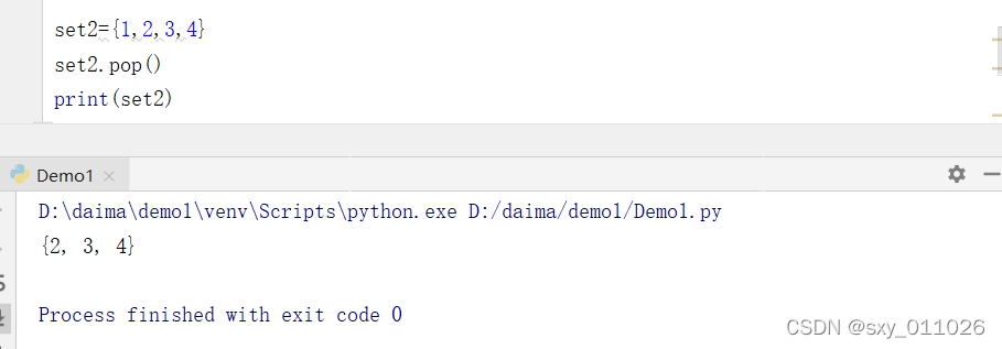 ?pop:使用pop删除是随机删除集合中的元素 如果set1没有元素讲程序报错