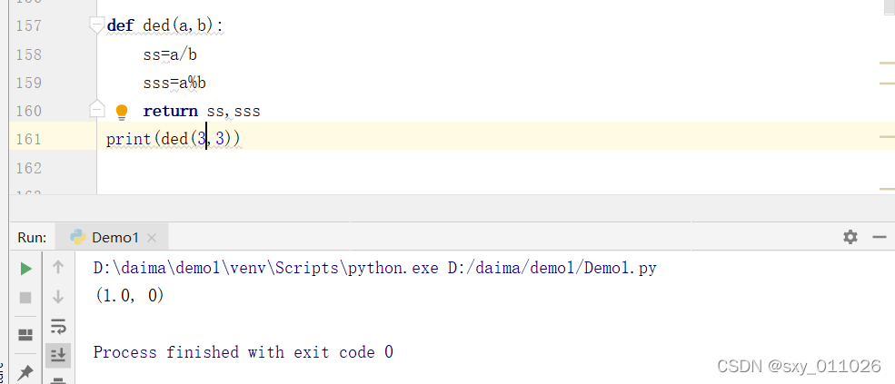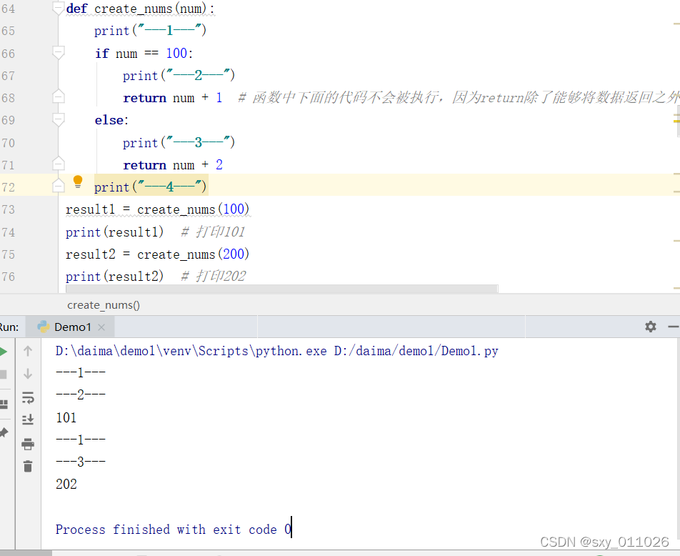 总结2: return后面可以是元组,列表、字典等,只要是能够存储多个数据的类型,就可以一次性返回多个数据