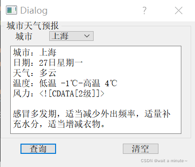 由于作者的源码给出的读取天气的api有点问题,所以找到了下面的地址:用python实现查询天气的功能_Zyong139064359的博客-CSDN博客_python 查询天气