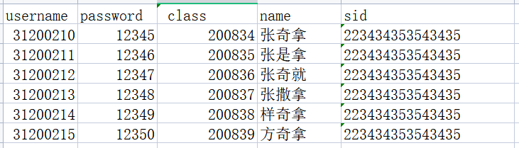 1.1、test.xlsx文件数据格式