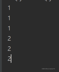 ?对照上一个程序我们发现1和2是同时输出的(后边1和2挨着是同时输出的结果),也就是两个线程在同时进行。