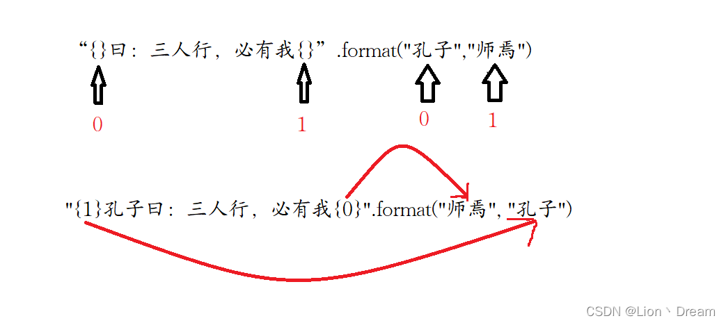 >>> print("{1}曰:学而时习之,不亦{0}".format("说乎","孔子"))