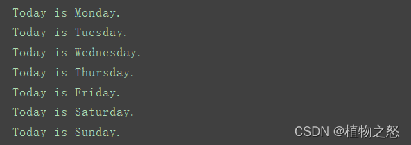 ????????通过for循环,可对每个元素执行任何操作。下面来扩展前面的示例,对于每一天,都可以介绍今天是星期几,例如: