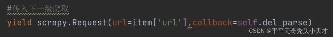 ??此次项目分为三次递进爬取,在spider爬虫主文件中分为了三个函数进行递进爬取,parse,del_parse,dell_parse三个文件进行分步式递进爬取,url内外链如何在scrapy中进行传递与响应是一个需要解决的问题。解决办法:scrapy中有scrapy.request模块可以承接参数,并且将参数转去设定的函数中。