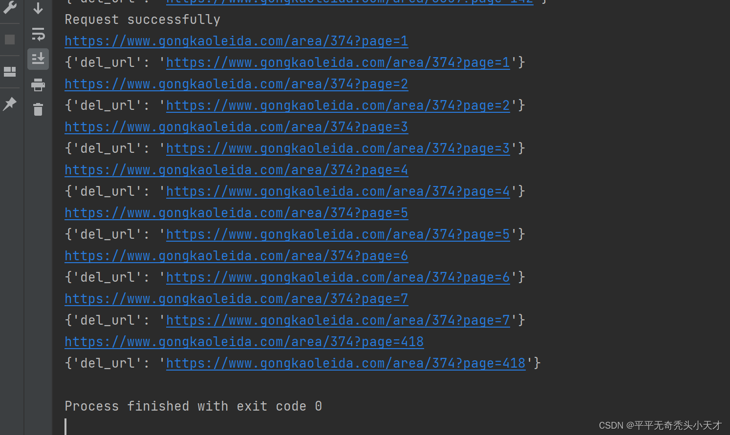 ?在控制台输出url数据,外链url数据存入mongdb,内链多层的url数据在控制台输出,成功获得请求的有Request successfully